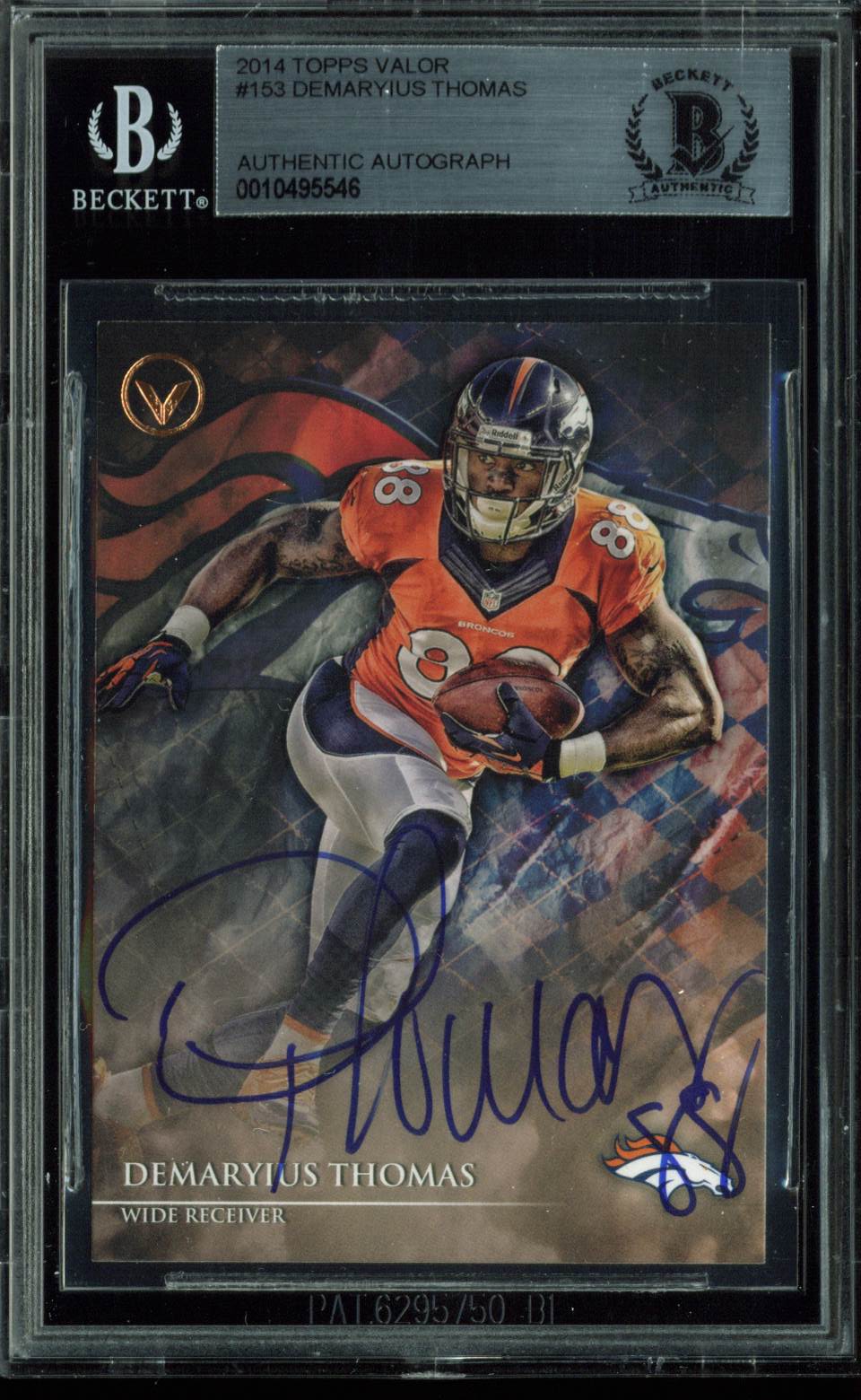 Broncos Demaryius Thomas Signed 2014 Topps Valor #153 Auto Card BAS Slabbed