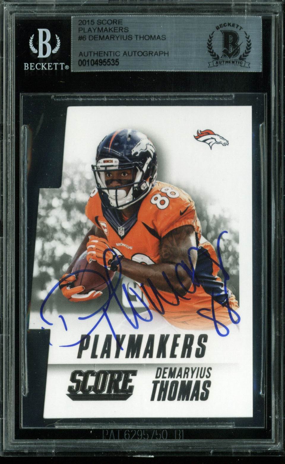 Broncos Demaryius Thomas Signed 2015 Score Playmakers #6 Auto Card BAS Slabbed