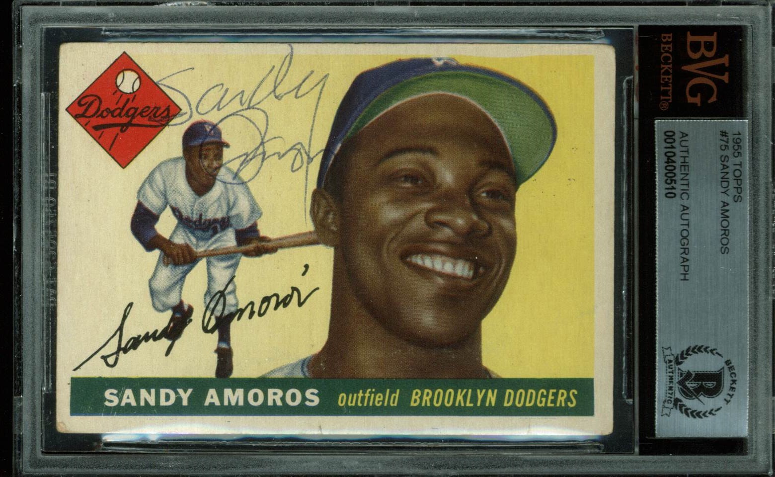 Dodgers Sandy Amoros Signed 1955 Topps #75 Rookie Auto Card BAS Slabbed