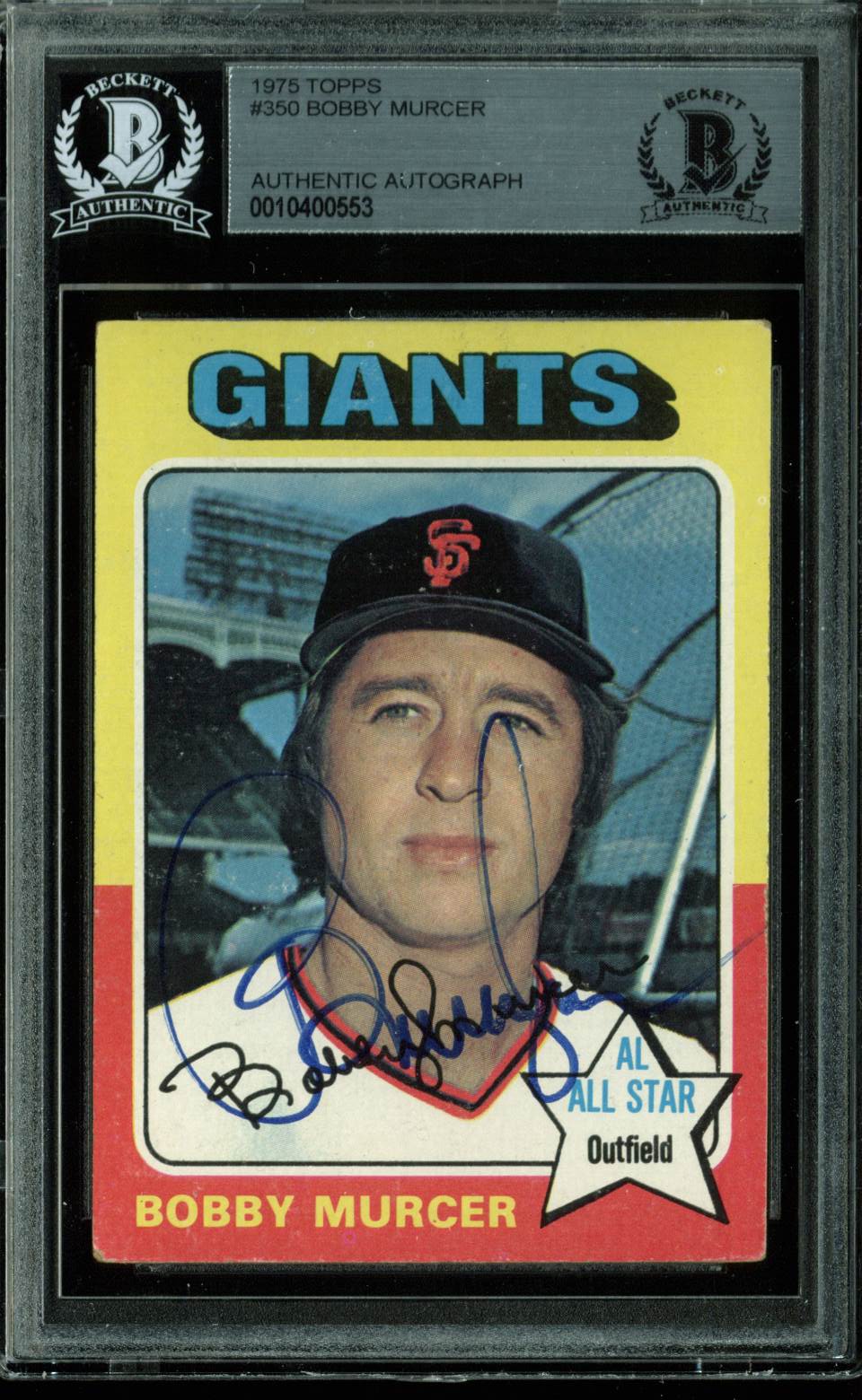 GIants Bobby Murcer Authentic Signed 1975 Topps #350 Card BAS Slabbed