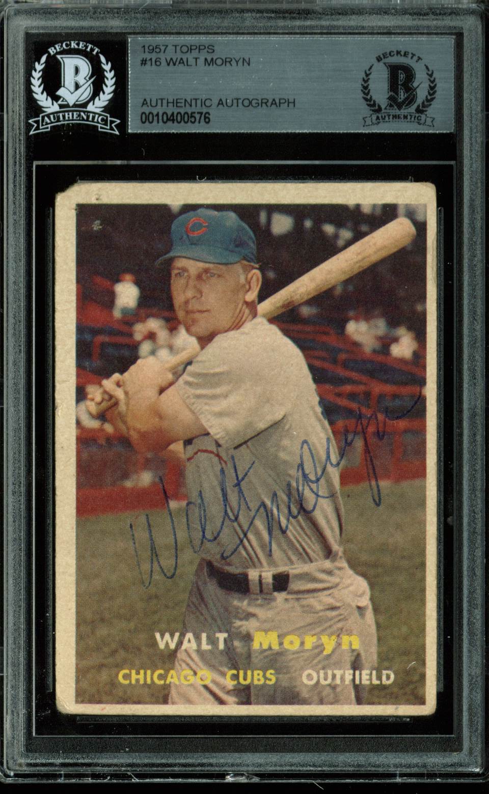 Cubs Walt Moryn Authentic Signed 1957 Topps #16 Card Autographed BAS Slabbed