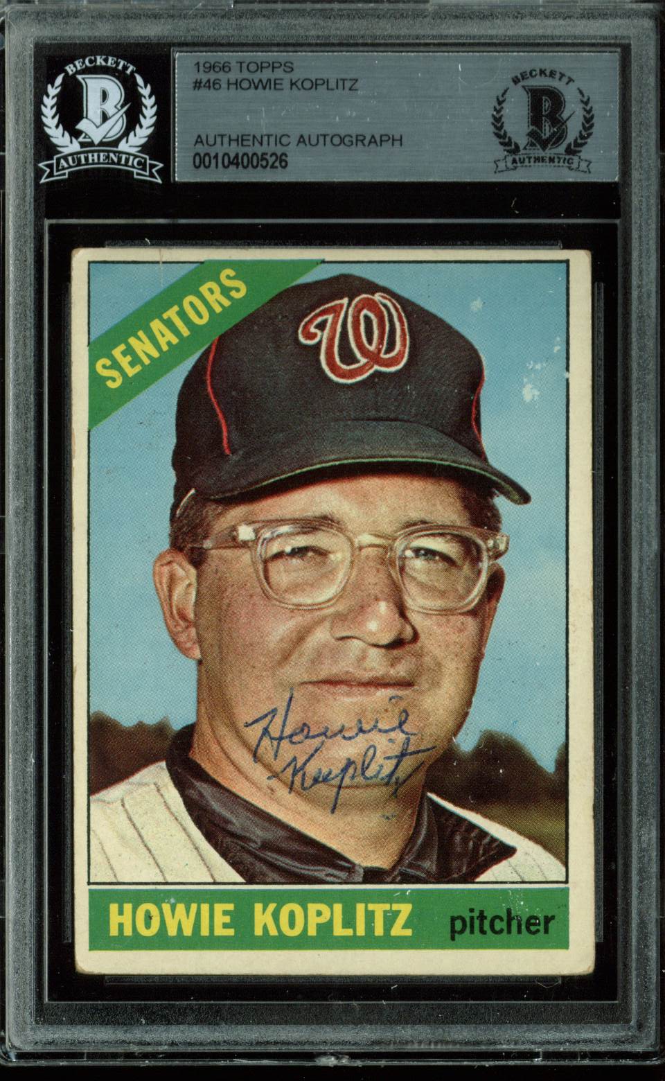 Senators Howie Koplitz Authentic Signed 1966 Topps #46 Auto Card BAS Slabbed