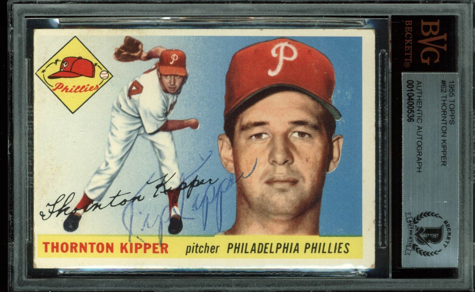 Phillies Thornton Kipper Authentic Signed 1955 Topps #62 Auto Card BAS Slabbed
