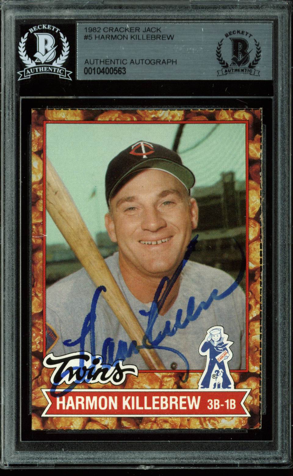Twins Harmon Killebrew Signed 1982 Cracker Jack #5 Auto Card BAS Slabbed