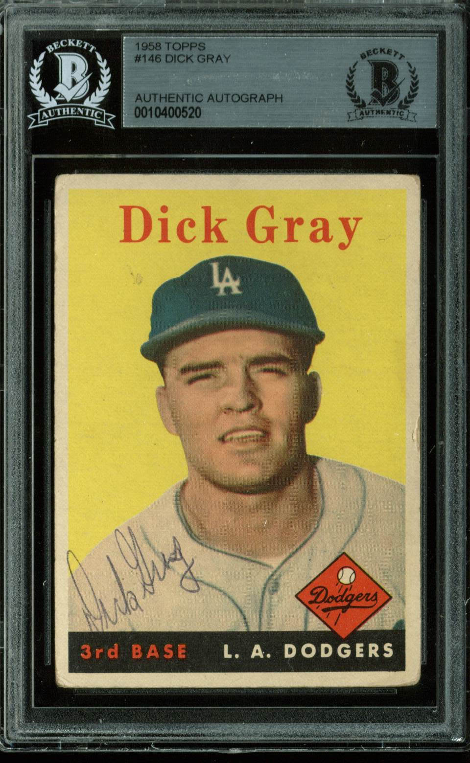 Dodgers Dick Gray Authentic Signed 1958 Topps #146 Auto Card BAS Slabbed