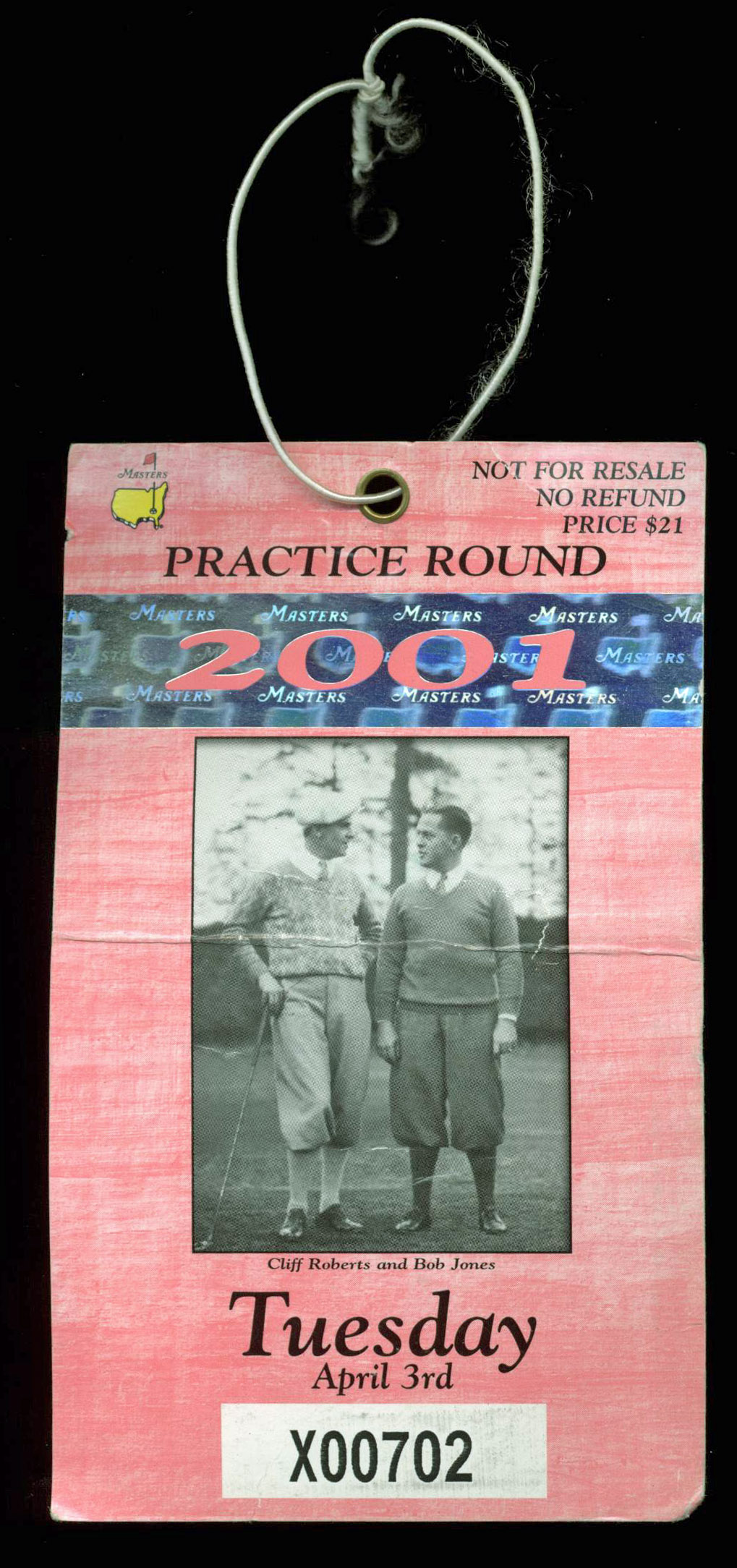 2001 Masters Augusta National Golf Club Tuesday Practice Rnd Ticket Woods Win