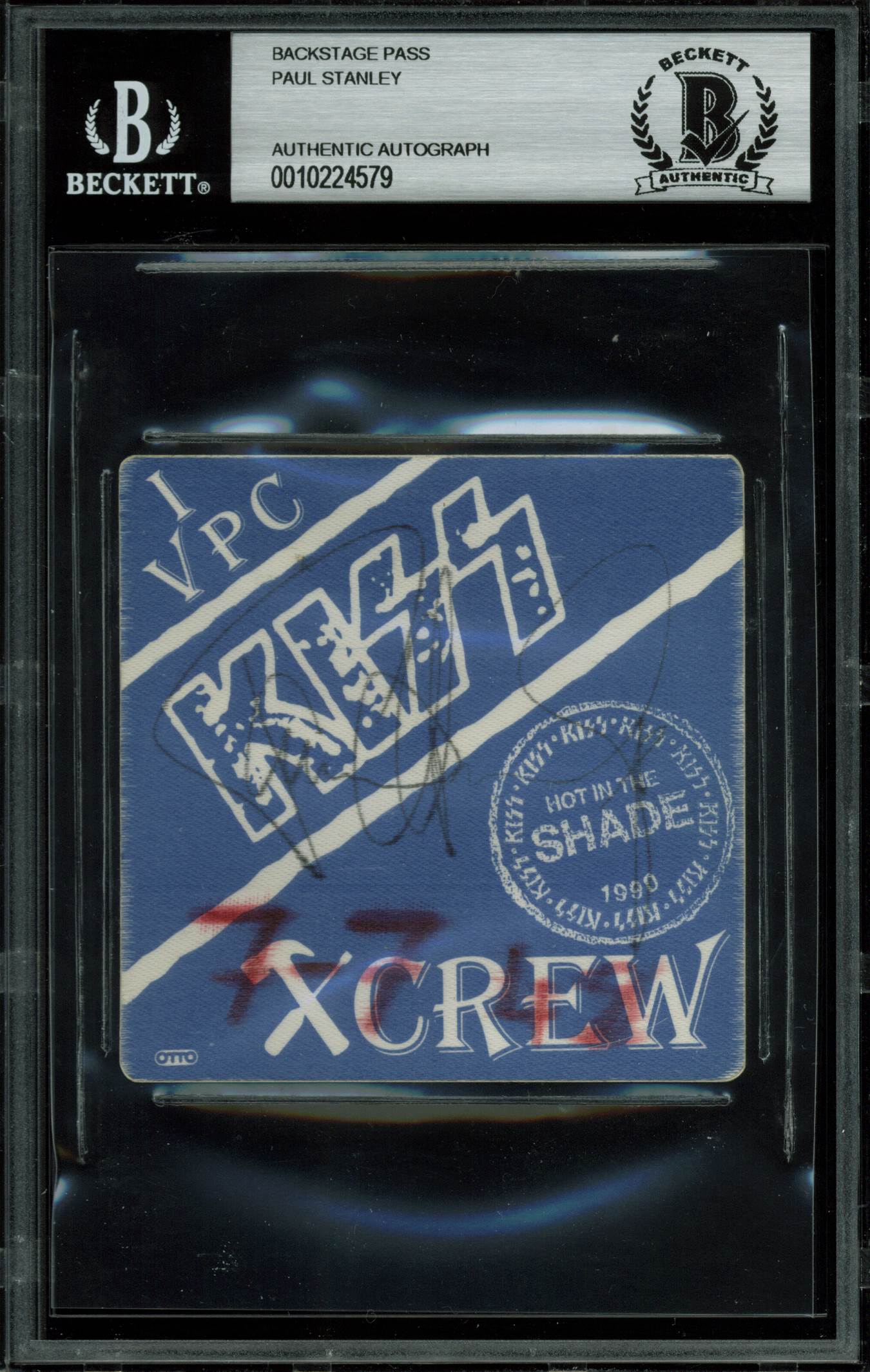 Paul Stanley KISS Authentic Signed Blue 1990 Tour Crew Backstage Pass BAS Slab
