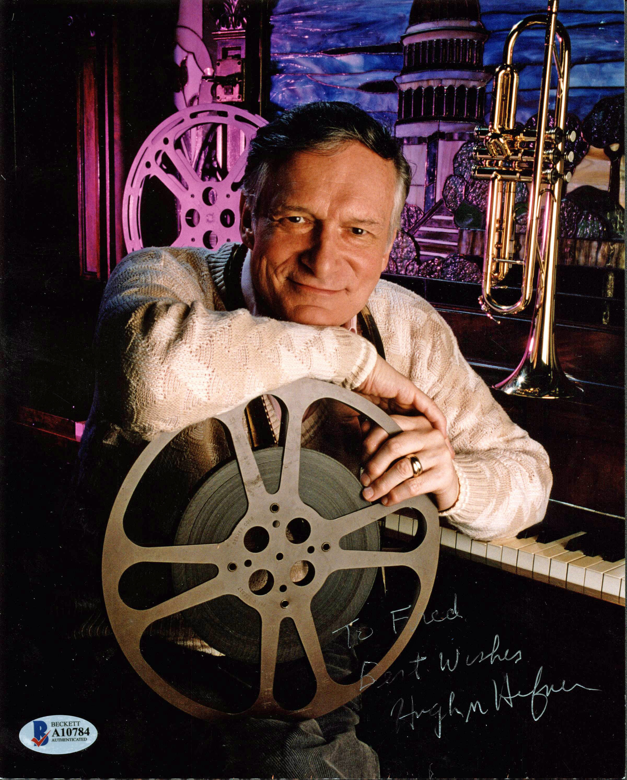 Hugh Hefner Best Wishes Authentic Signed 8x10 Photo Autographed BAS #A10784