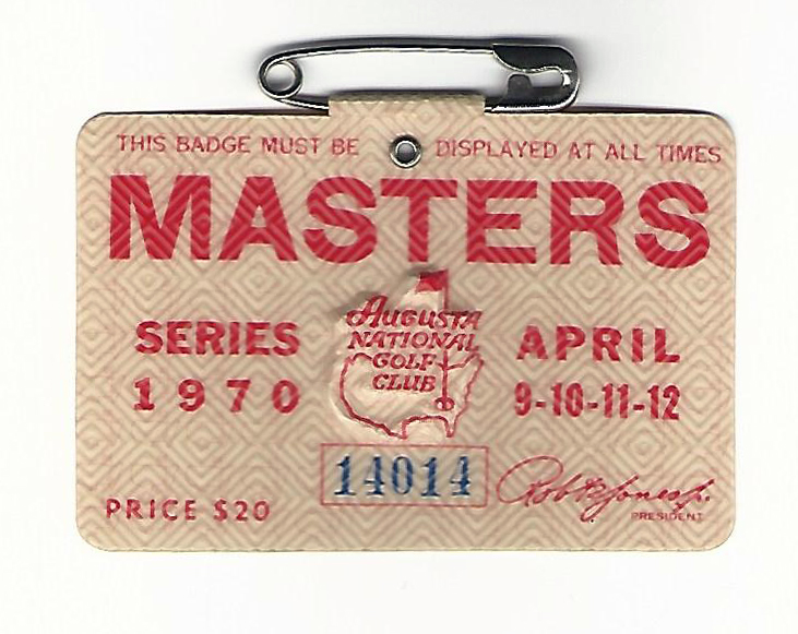 1970 Masters Augusta National Golf Club Badge Ticket Billy Casper Jr. Wins PGA