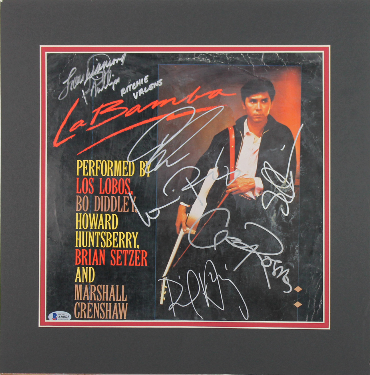 La Bamba (6) Lou Diamond Phillips Signed & Matted Soundtrack Album Cover BAS
