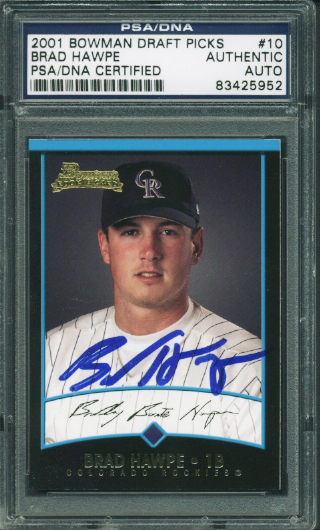 Rockies Brad Hawpe Authentic Signed Card 2001 Bowman Rookie #10 PSA/DNA Slabbed