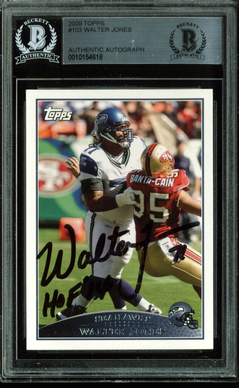 Seahawks Walter Jones "HOF 14" Authentic Signed Card 2009 Topps #109 BAS Slabbed