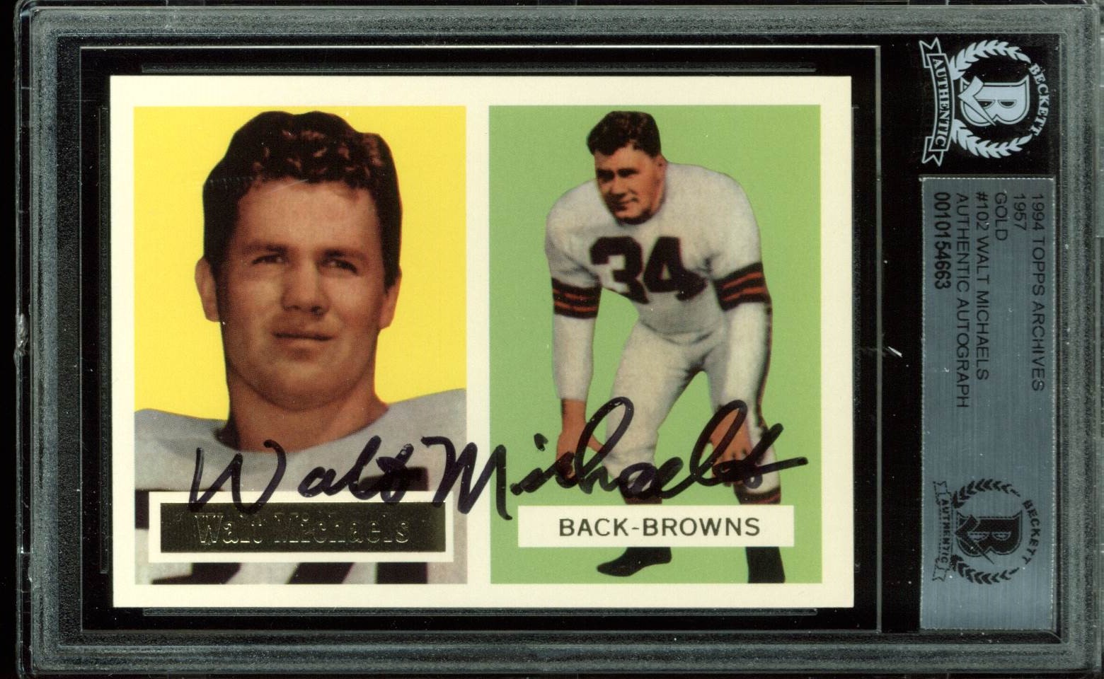 Browns Walt Michaels Signed Card 1994 Topps Archives 1957 Gold #102 BAS Slabbed