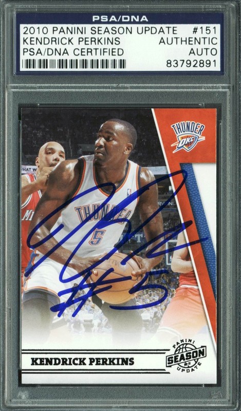 Thunder Kendrick Perkins Signed Card 2010 Panini Season Update #151 PSA Slabbed