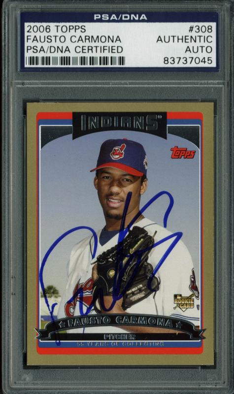 Indians Fausto Carmona Authentic Signed Card 2006 Topps Gold #308 PSA Slabbed