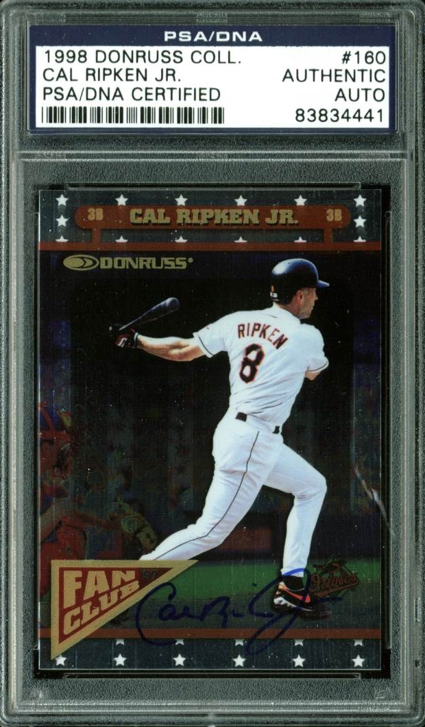 Orioles Cal Ripken Jr. Authentic Signed Card 1998 Donruss Coll. #160 PSA Slabbed