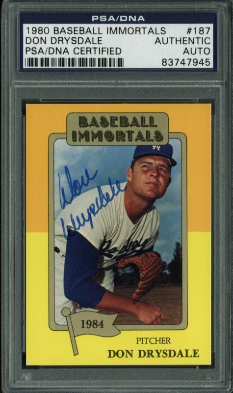 Dodgers Don Drysdale Signed Card 1980 Baseball Immortals #187 PSA/DNA Slabbed