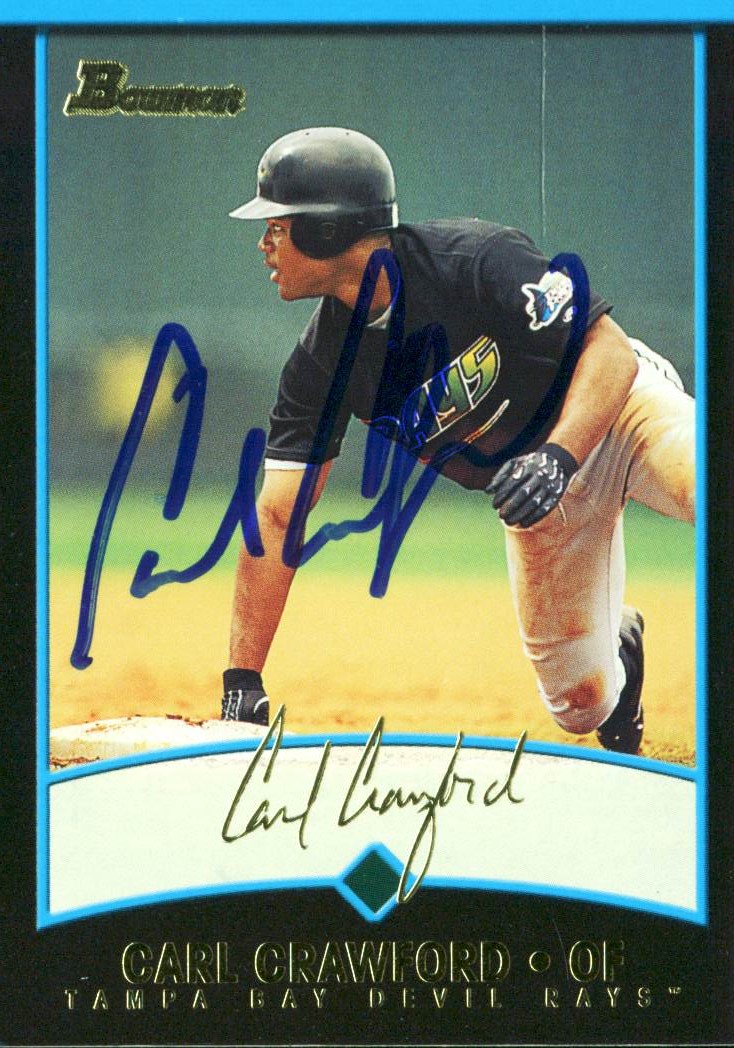 Rays Carl Crawford Authentic Signed Card 2001 Bowman RC #229 Autographed w/ COA