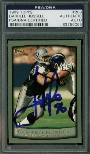 Raiders Darrell Russell Authentic Signed Card 1999 Topps #203 PSA/DNA Slabbed