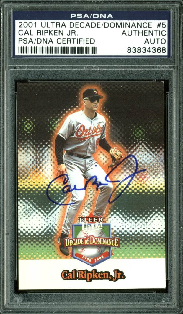 Orioles Cal Ripken Jr. Signed Card 2001 Ultra Decade Of Dominance #5 PSA Slabbed