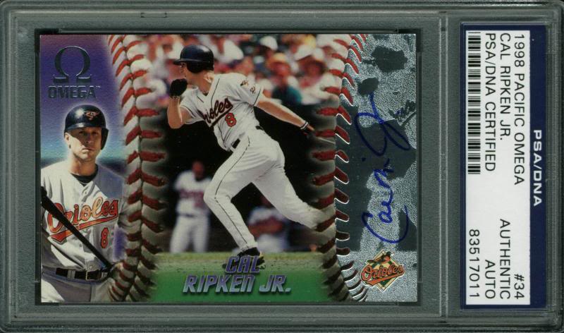 Orioles Cal Ripken Jr. Authentic Signed Card 1998 Pacific Omega #34 PSA Slabbed