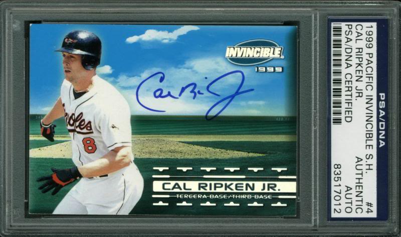 Orioles Cal Ripken Jr. Signed Card 1999 Pacific Invincible S.H. #4 PSA Slabbed