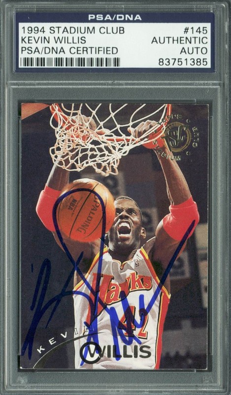 Hawks Kevin Willis Authentic Signed Card 1994 Stadium Club #145 PSA/DNA Slabbed