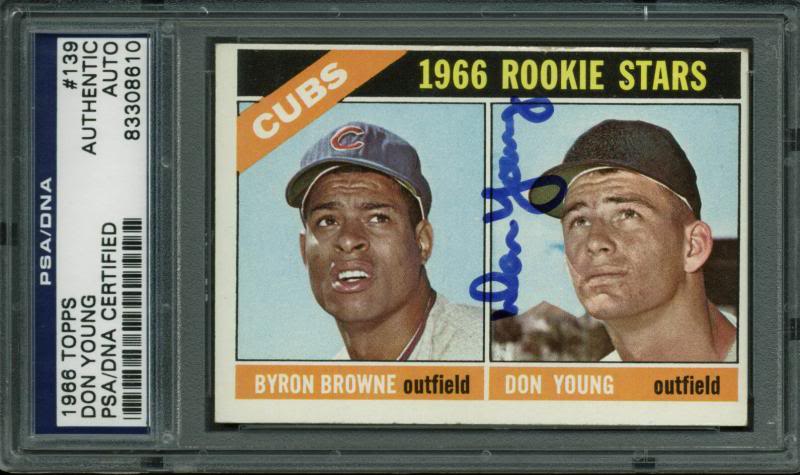 Cubs Don Young Authentic Signed Card 1966 Topps Rc #139 PSA/DNA Slabbed