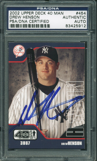Yankees Drew Henson Authentic Signed Card 2002 Ud Rc 40 Man #454 PSA/DNA Slabbed