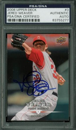 Angels Jered Weaver Signed Card 2008 Upper Deck #3 PSA/DNA Slabbed #83755277