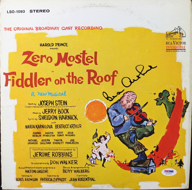 Beatrice Arthur Fiddler On The Roof Signed Album Cover W/ Vinyl PSA/DNA #U52950