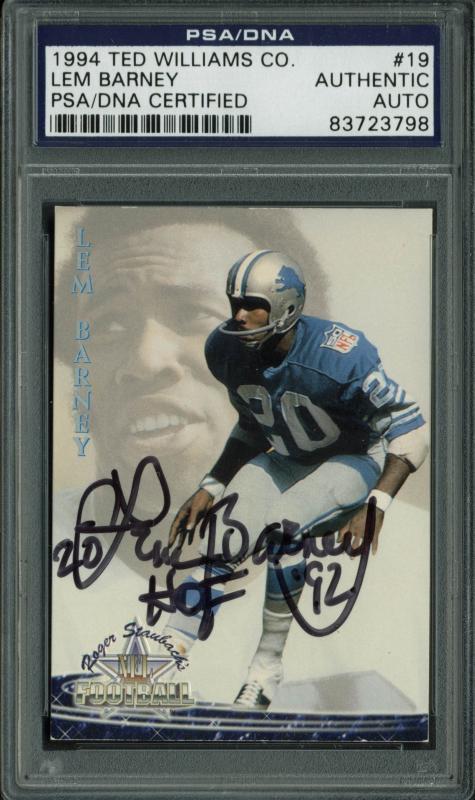Lions Lem Barney 'HOF' Signed Card 1994 Ted Williams Co. #19 PSA/DNA Slabbed