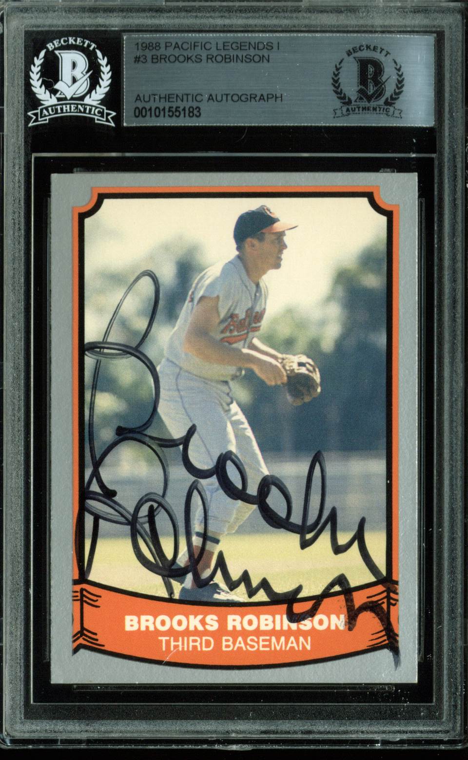 Orioles Brooks Robinson Signed Card 1988 Pacific Legends I #3 BAS Slabbed