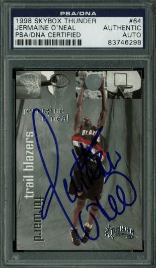 Blazers Jermaine O'Neal Signed Card 1998 Skybox Thunder #64 PSA/DNA Slabbed