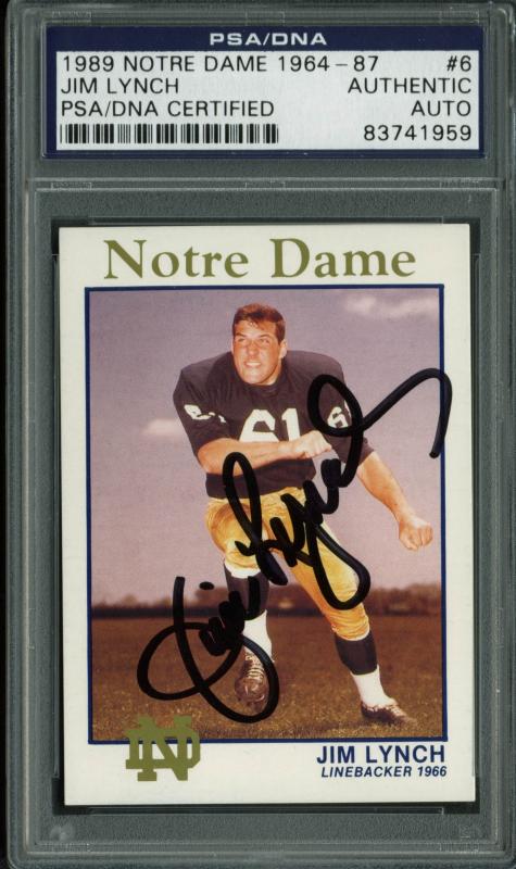 Notre Dame Jim Lynch Signed Card 1989 Notre Dame 1964-87 #6 PSA/DNA Slabbed