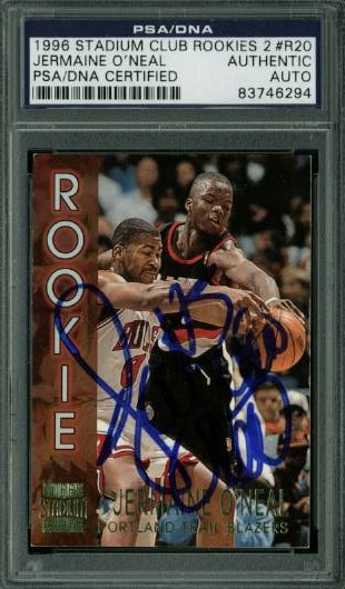 Blazers Jermaine O'Neal Signed Card 1996 Stadium Club Rookies 2 #R20 PSA Slabbed