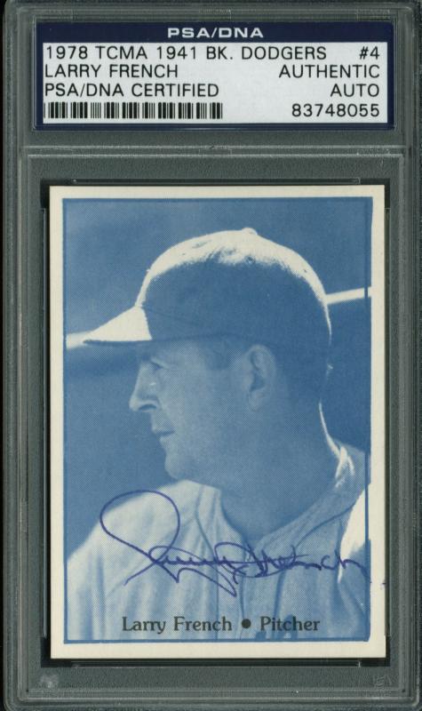 Dodgers Larry French Signed Card 1978 Tcma 1941 Bk. Dodgers #4 PSA/DNA Slabbed