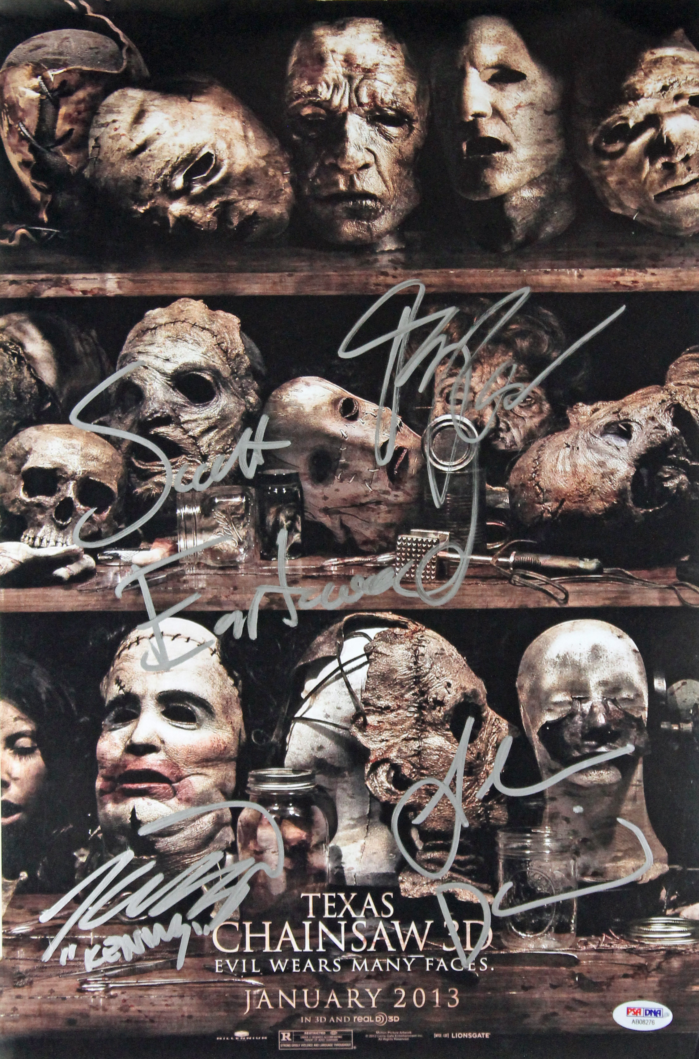 Texas Chainsaw 3D (4) Daddario, Eastwood, Signed 12x18 Movie Poster PSA #AB08276