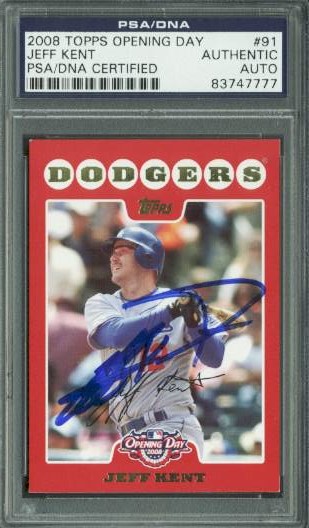 Dodgers Jeff Kent Authentic Signed Card 2008 Topps Opening Day #91 PSA Slabbed