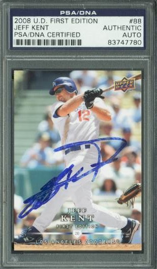 Dodgers Jeff Kent Authentic Signed Card 2008 U.D. First Edition #88 PSA Slabbed