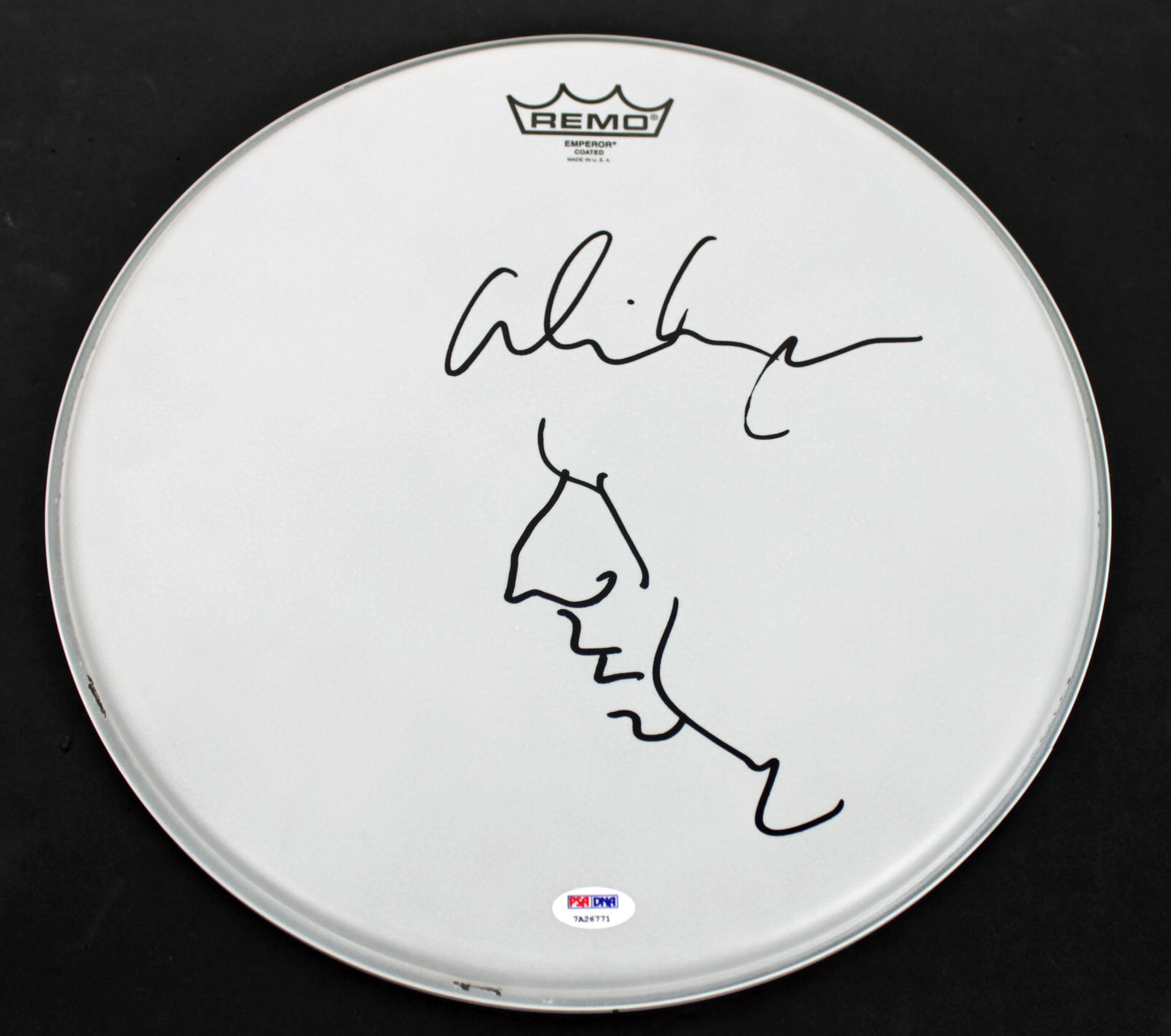 Alice Cooper Signed Drumhead w/ Hand Drawn Self Portrait Sketch PSA ITP #7A26771