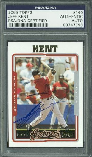 Astros Jeff Kent Authentic Signed Card 2005 Topps #140 PSA/DNA Slabbed