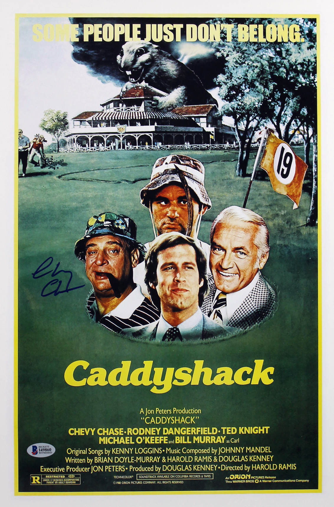Chevy Chase Caddyshack Authentic Signed 12x18 Mini Movie Poster BAS Witnessed 1
