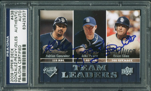 Gonzalez, Peavy & Giles Authentic Signed Card 07 Upper Deck #438 PSA/DNA Slabbed
