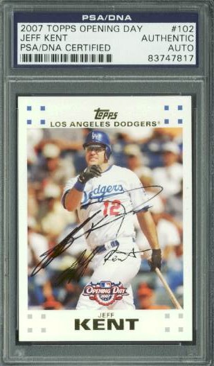 Dodgers Jeff Kent Authentic Signed Card 2007 Topps Opening Day #102 PSA Slabbed