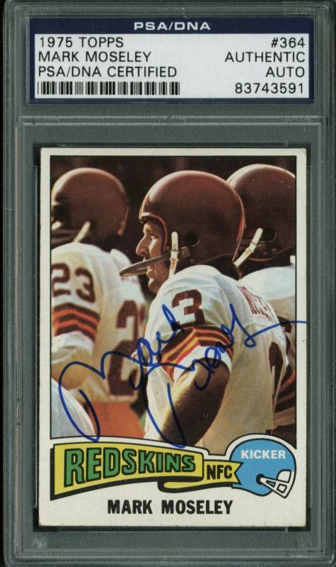 Redskins Mark Moseley Authentic Signed Card 1975 Topps #364 PSA/DNA Slabbed