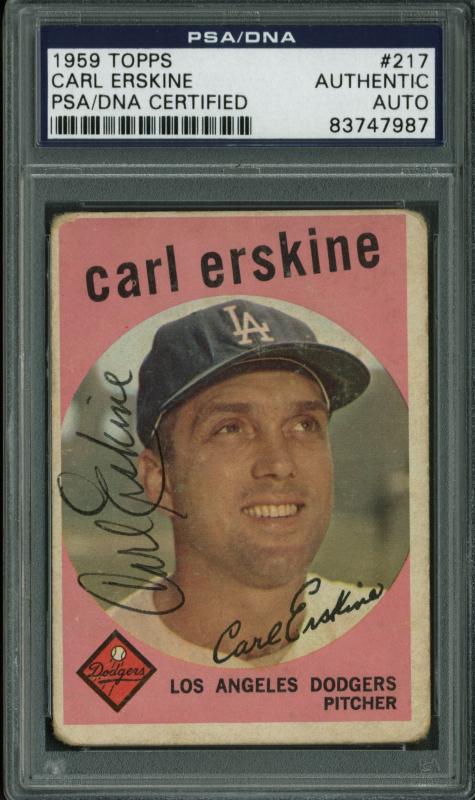 Dodgers Carl Erskine Authentic Signed Card 1959 Topps #217 PSA/DNA Slabbed