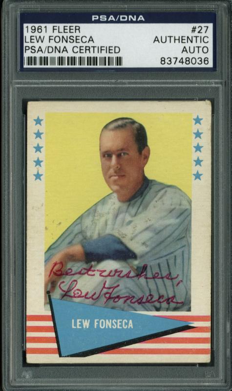 Indians Lew Fonseca Authentic Signed Card 1961 Fleer #27 PSA/DNA Slabbed