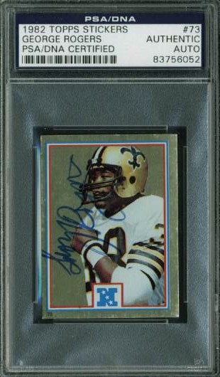 Saints George Rogers Authentic Signed Card 1982 Topps Stickers #73 PSA Slabbed