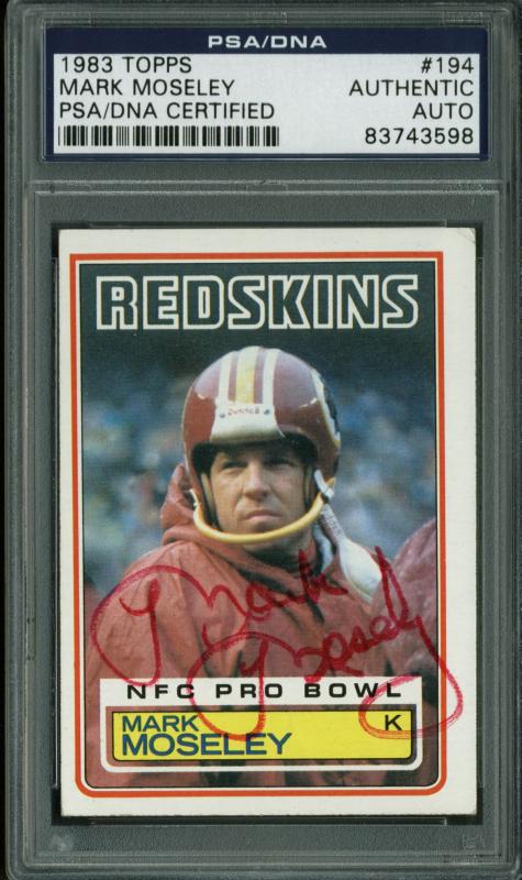 Redskins Mark Moseley Authentic Signed Card 1983 Topps #194 PSA/DNA Slabbed